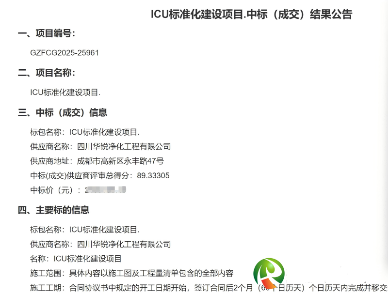 2025年5月中標山南市藏醫(yī)院ICU標準化建設項目,目前已進場施工