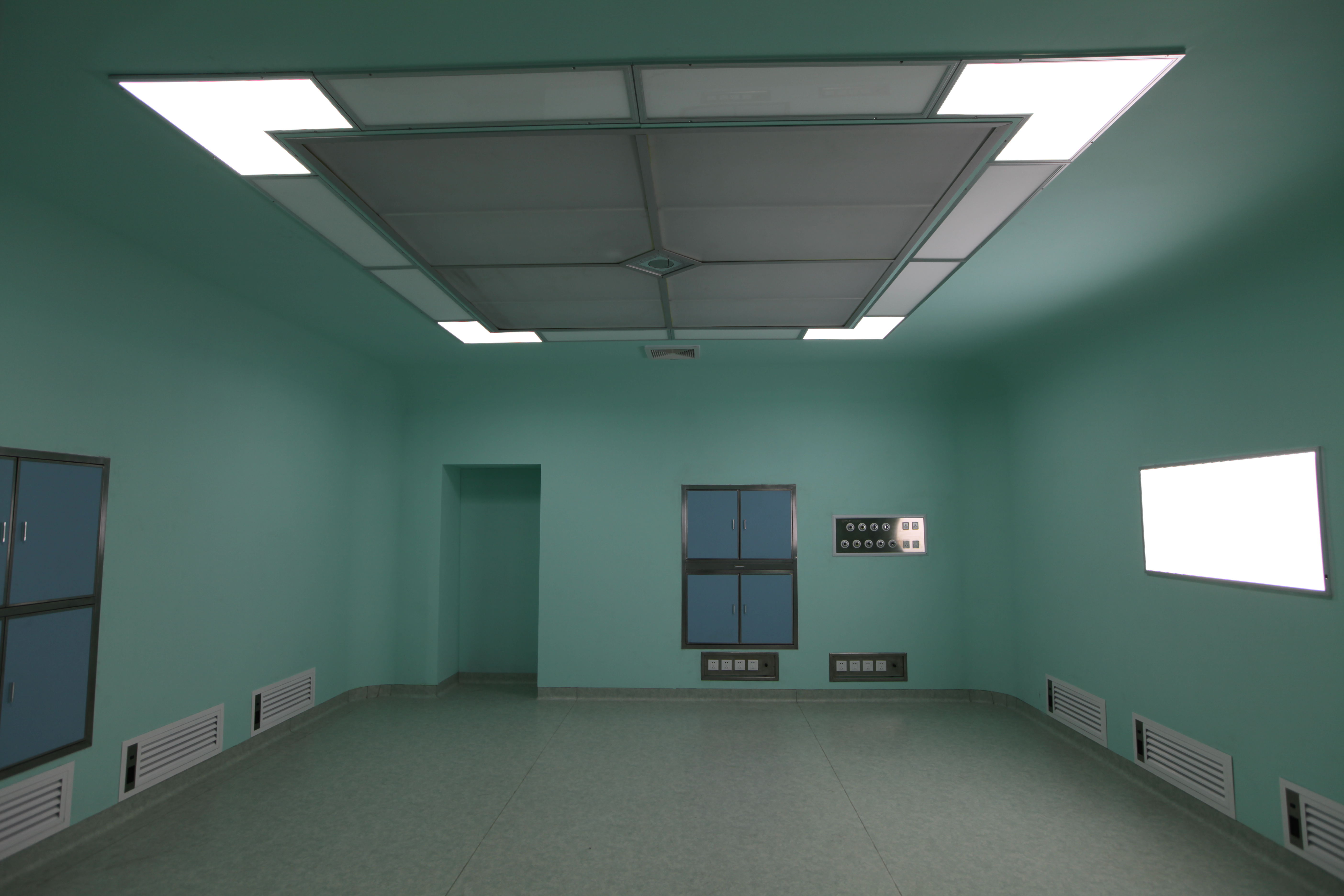 回風口的設置對保證潔凈手術室合理的氣流起決定作用,為使送風氣流能覆蓋手術臺,不使?jié)崈魵饬鞫搪?,要求回風口不超過地面0.5m且下端離地面不低于0.1m,回風口氣流風速不應大于2m/s。根據(jù)國內科研成果,手術室寬度小于3m時采用單側下回風,大于3m時采用兩側下回風。在室內壓力允許狀態(tài)下,回風口應增設初效乃至中效過濾網(wǎng),否則在室內人員操作以及術前、術后的清理工作中,回風中可能含有較多的毛發(fā)和紡織纖維等,這些纖維通過回風管路被吸入,一方面很容易使管道積塵滋菌,另一方面機組內初效過濾器受污染會加快過濾網(wǎng)的更換頻率,從而增加了維護費用。